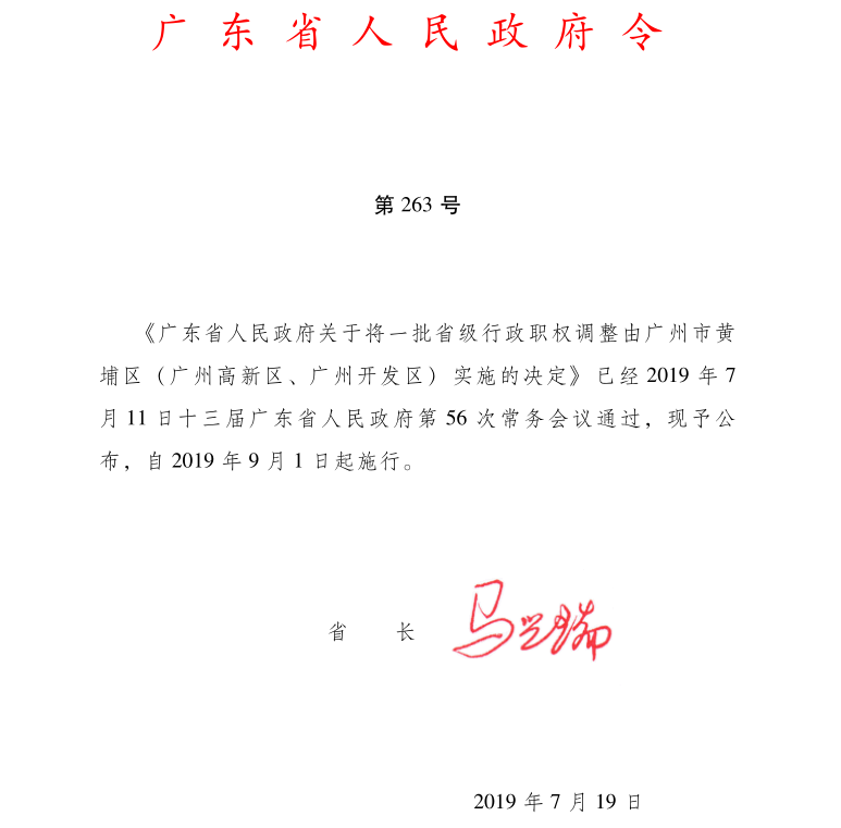 為支持推動廣州市黃埔區(廣州高新區、廣州開發區)創建省營商環境改革創新實驗區,進一步擴大廣州市黃埔區(廣州高新區、廣州開發區)的經濟社會管理權限,省人民政府決定將11項省級行政職權調整由廣州市黃埔區人民政府有關部門、廣州高新區管委會和廣州開發區管委會及其有關部門(以下統稱承接機關)實施。承接機關和省直有關部門應當依照職權認真組織實施,加強銜接溝通,確保相關省級行政職權放得下、接得住、管得好。