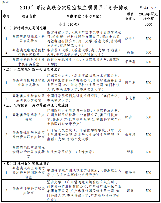 2.2019-2020年度粵港澳科技合作領域擬立項項目計劃安排表